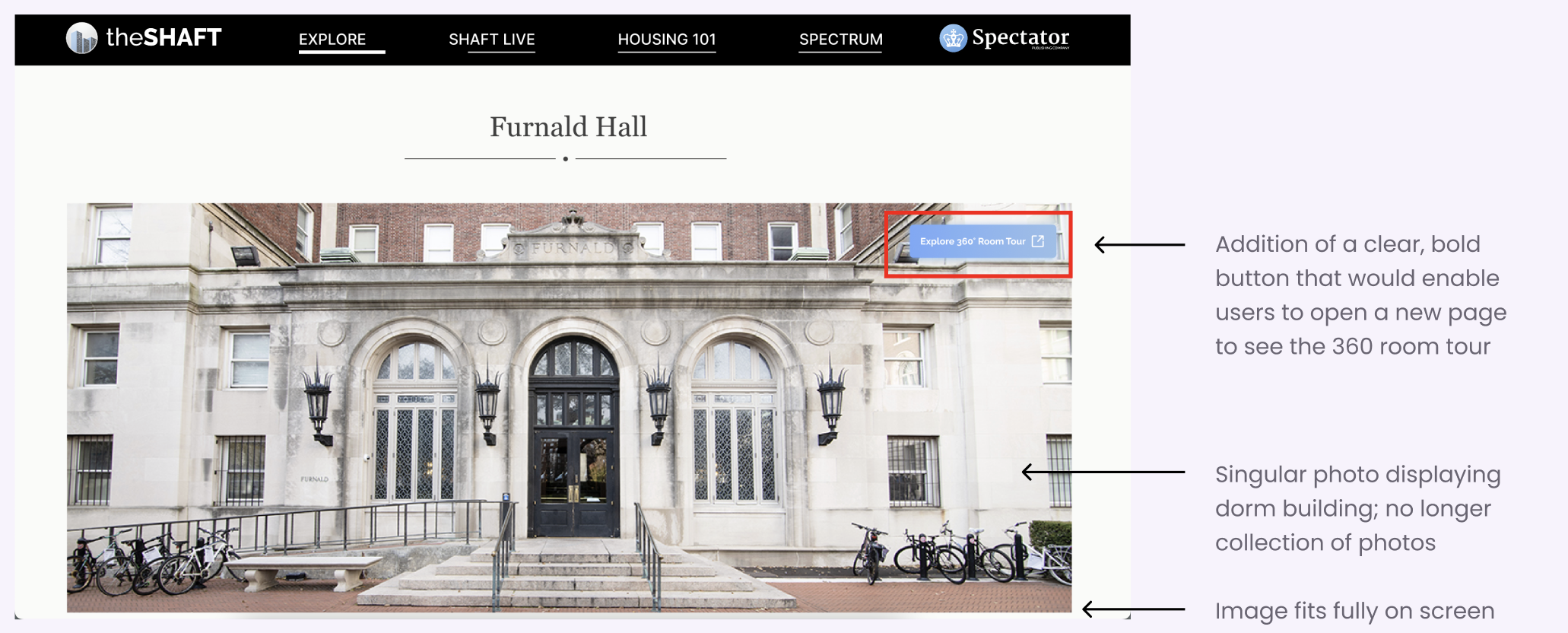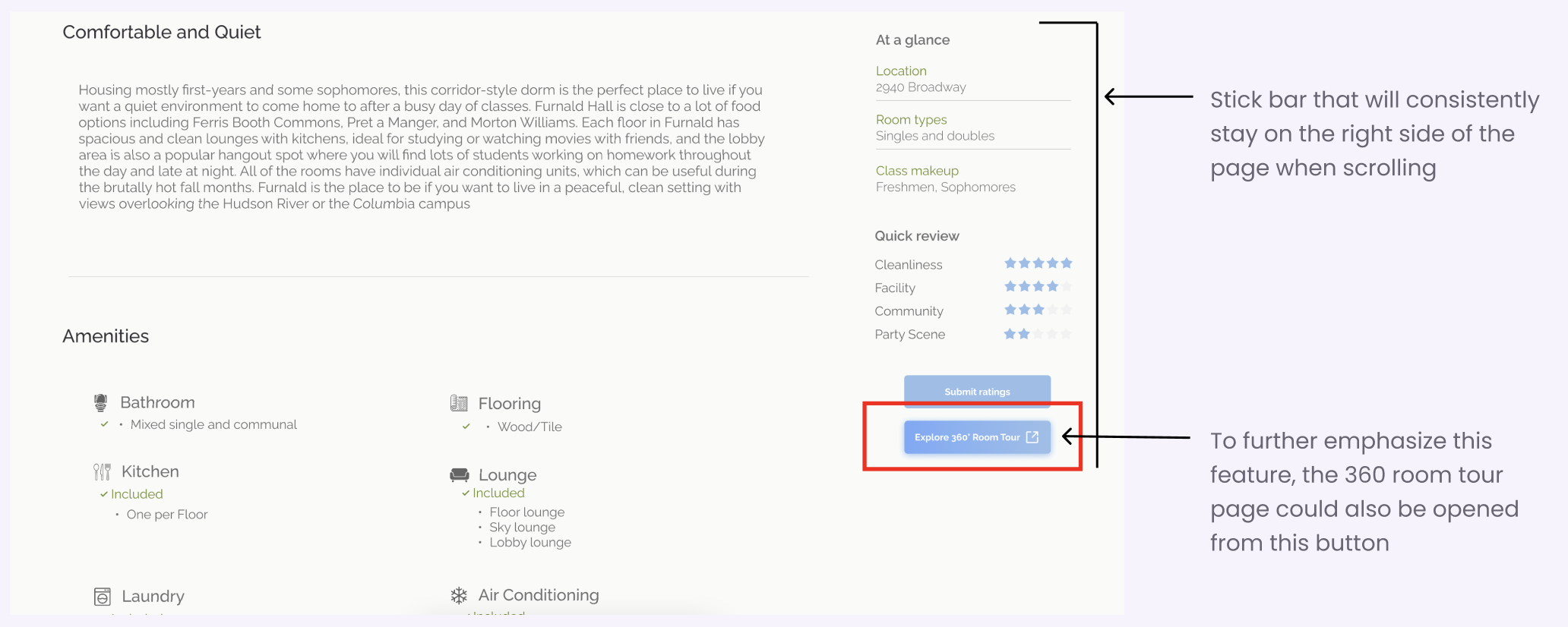 In this project, our team is dedicated to redesign the individual dorm pages for theShaft. The purpose of this website is to assist students in gaining a comprehensive understanding of the campus housing options at Columbia University. Our primary objective is to integrate a 360 room tour feature that would offer immersive and comprehensive viewing of the campus dorms, providing students with invaluable information to make informed housing decisions. Please keep in mind that this project is ongoing.